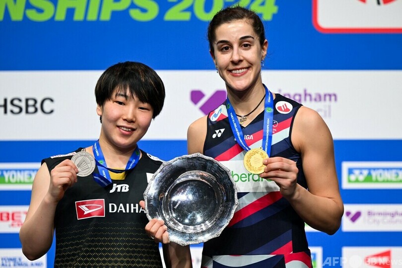 【3月18日 AFP】バドミントン、全英オープン(YONEX All England Open Badminton Championships 2024)は17日、各種目決勝が行われ、女子シングルスで大会第4シードの山口茜(Akane Yamaguchi)は第5シードのキャロリーナ・マリン(Carolina Marin、スペイン)と対戦し、24-26、1-11となったところで股関節のけがのため棄権した。マリンは9年ぶり自身2度目の全英オープン優勝となった。