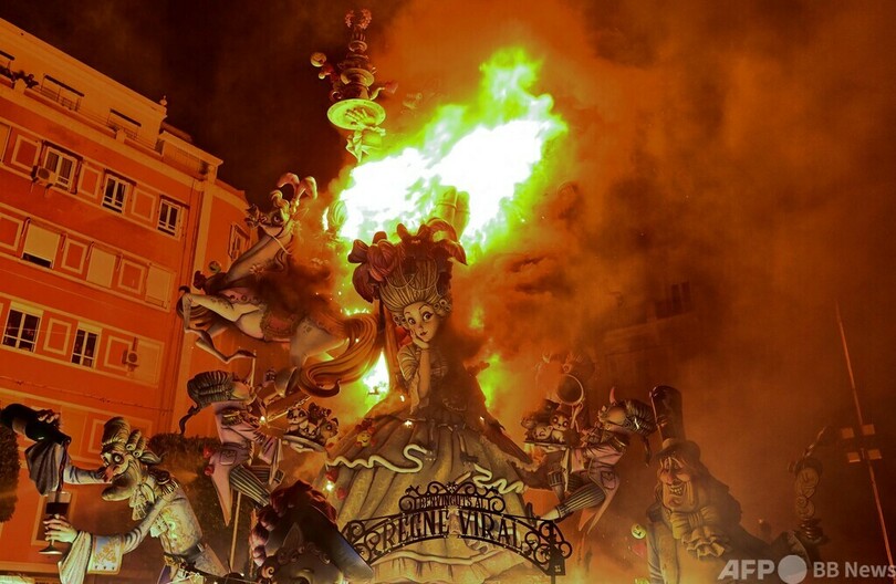 【3月20日 AFP】スペイン・バレンシア(Valencia)で開かれていた恒例の火祭り「ファリャス(Las Fallas)」が19日、最終日を迎え、祭りのために作られた張り子の人形「ニノット(Ninot)」や、ニノットで飾られた山車「ファリャ」が燃やされた。