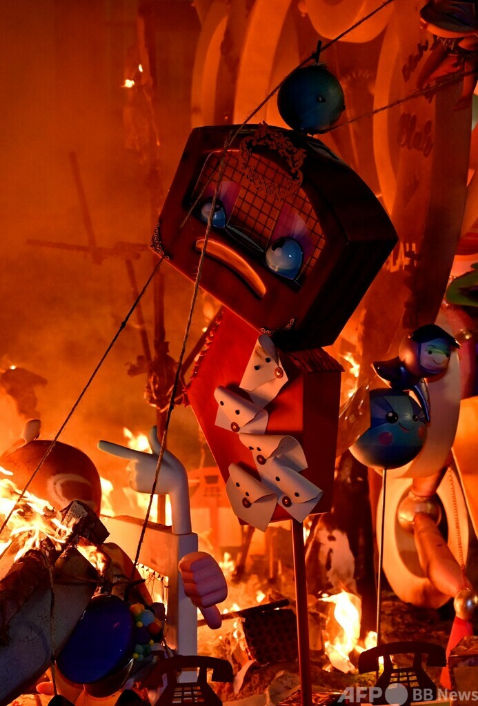 【3月20日 AFP】スペイン・バレンシア(Valencia)で開かれていた恒例の火祭り「ファリャス(Las Fallas)」が19日、最終日を迎え、祭りのために作られた張り子の人形「ニノット(Ninot)」や、ニノットで飾られた山車「ファリャ」が燃やされた。