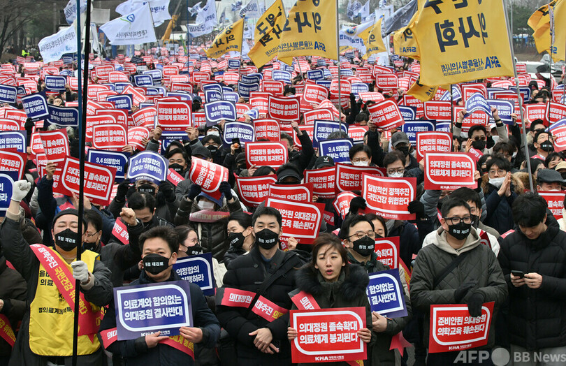 【3月20日 AFP】韓国政府は20日、大学医学部の定員を全国で2000人増やすと発表した。定員増に反対する研修医らのストライキが1か月にわたって続く中、改革を押し切った形だ。