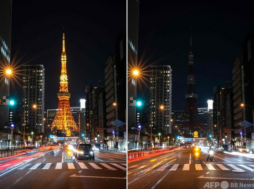 「アースアワー」は、世界自然保護基金(WWF)が主催するイベント。同日午後8時30分から1時間、東京タワー(Tokyo Tower)やギリシャのアクロポリス(Acropolis)などが消灯した。