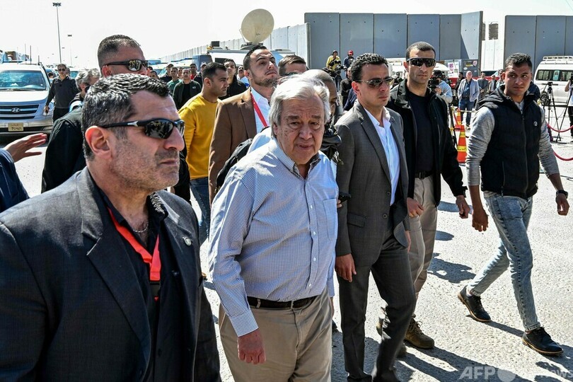 【3月25日 】国連(UN)のアントニオ・グテレス(Antonio Guterres)事務総長は24日、訪問先のエジプトで、パレスチナ自治区ガザ地区(Gaza Strip)の住民は「恐怖と飢餓」にさらされているとして、人道支援の拡大と即時停戦を訴えた。