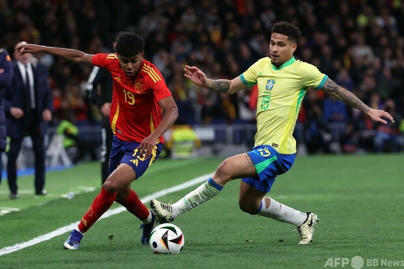 【3月27日 AFP】サッカー国際親善試合が26日、スペイン・マドリードで行われ、若手のラミネ・ヤマル(Lamine Yamal)とエンドリッキ(Endrick)が躍動したスペインとブラジルの一戦は、ブラジルが終了間際に追いついて3-3の引き分けに終わった。