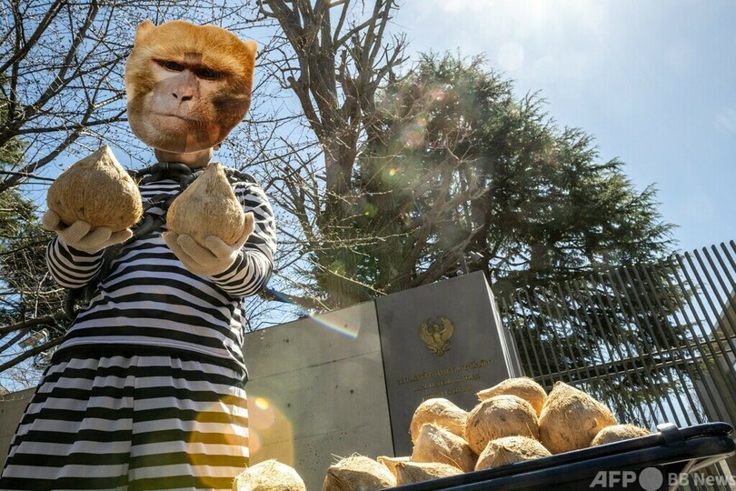 タイは猿の「強制労働」廃止せよ 東京で抗議デモ