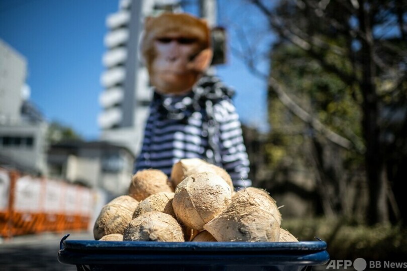 【3月28日 AFP】動物愛護団体「動物の倫理的扱いを求める人々の会(PETA)」は27日、東京都品川区の在東京タイ大使館前で、ブタオザルを使ったココナツ収穫の廃止を求めるデモを行った。