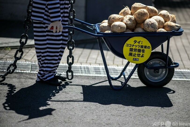 タイは猿の「強制労働」廃止せよ 東京で抗議デモ