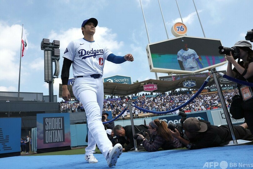 古巣ロサンゼルス・エンゼルス(Los Angeles Angels)時代に2度のア・リーグ年間最優秀選手(MVP)に選出された大谷はこの日、本拠地ドジャースタジアム(Dodger Stadium)でセントルイス・カージナルス(St. Louis Cardinals)とのレギュラーシーズンホーム開幕戦に臨んだ。