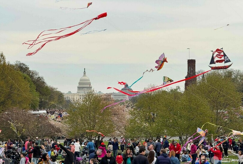 【3月31日 AFP】米首都ワシントンで30日、さまざまな色や形のたこが空を舞った。たこ揚げイベントは、毎年恒例の桜祭りの一環として行われている。