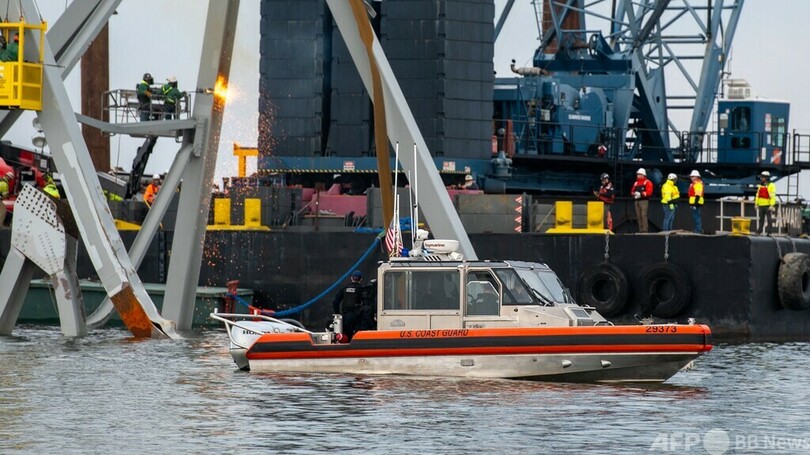 ウェス・ムーア(Wes Moore)州知事は、撤去には「何日もかかる」としながら、いずれ航行規制が解除され、タグボートやバージ船(はしけ)などが近づけるようになれば作業のテンポは速まるだろうとの見通しを示した。(c)AFP