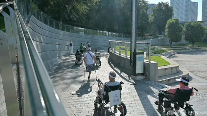 64歳の彭海廷(Peng Haiting)さんは、幼い頃のポリオのために障害が残った。そのため、つえを使わなければ移動できなかった。2000年には自宅の近くに店を開いた。自宅から店まで1キロ程度だが、彭さんにとっては3キロ近い道のりだった。急な坂を避けるために回り道をせねばならなかったからだ。10年前には障害が悪化したために、車椅子を使わざるを得なくなった。移動はますます困難になった。しかし数年前から再び、移動が楽になった。例えば歩道と車道の段差にスロープが設けられて、通れる場所が増えたからだ。彭さんは「今ではどこに行くのも便利です」と、感慨深げに述べた。