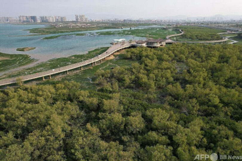 【4⽉7⽇ Peopleʼs Daily】中国・福建省(Fujian)アモイ市(Xiamen)の下潭尾海浜湿地公園。十数年前には廃棄物が散乱していた。干拓や無秩序な水産養殖などの影響で湾内は荒れ果て汚染が進んだ。干潟の原生マングローブ林は破壊されていた。