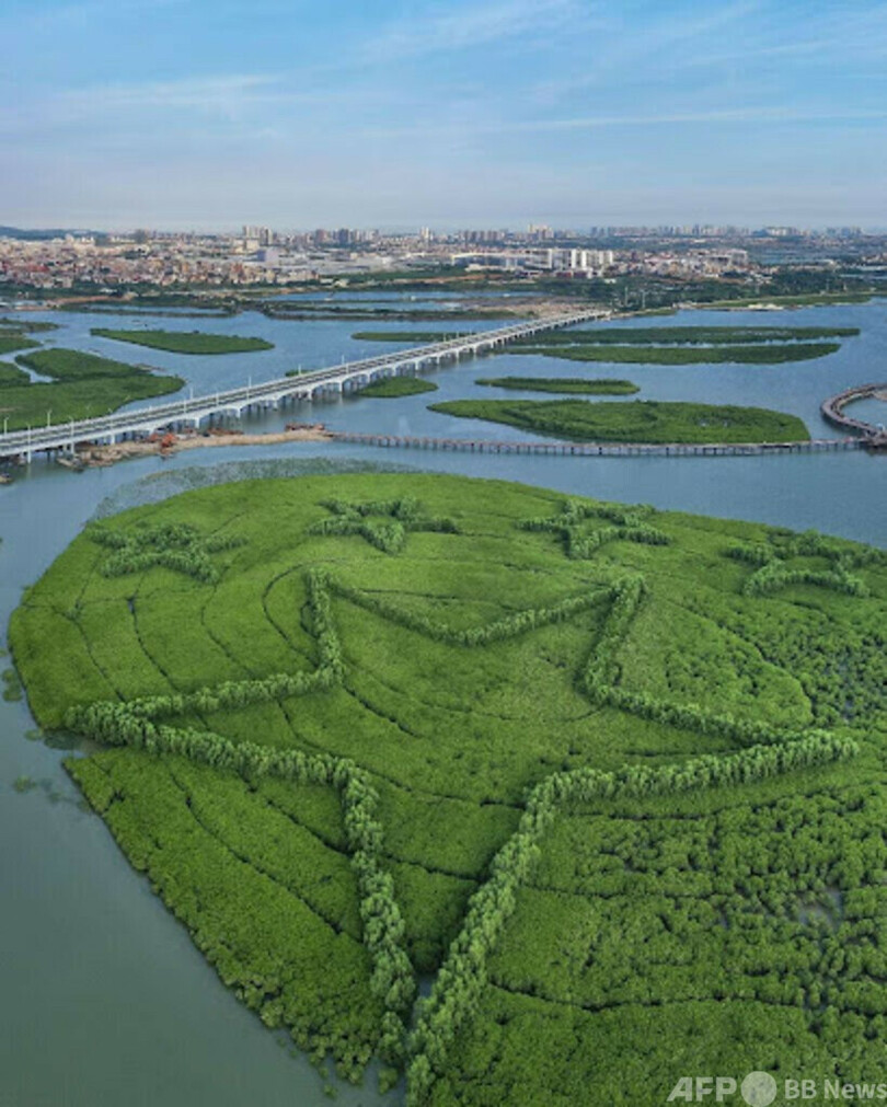 【4⽉7⽇ Peopleʼs Daily】中国・福建省(Fujian)アモイ市(Xiamen)の下潭尾海浜湿地公園。十数年前には廃棄物が散乱していた。干拓や無秩序な水産養殖などの影響で湾内は荒れ果て汚染が進んだ。干潟の原生マングローブ林は破壊されていた。