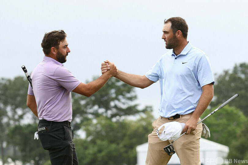 シェフラーはアーノルド・パーマー招待(Arnold Palmer Invitational 2024)とザ・プレーヤーズ選手権(The Players Championship 2024)を制して今大会を迎えていたが、2017年のダスティン・ジョンソン(Dustin Johnson、米国)以来となる3大会連続優勝はならなかった。(c)AFP