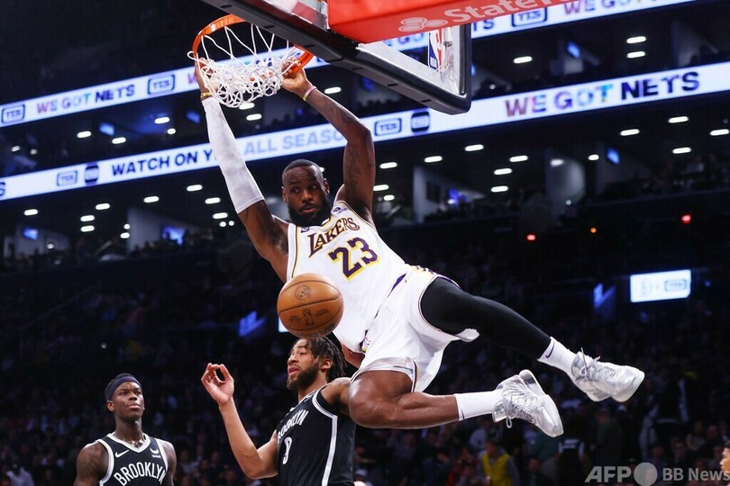 【4月1日 AFP】米プロバスケットボール(NBA)、ロサンゼルス・レイカーズ(Los Angeles Lakers)のレブロン・ジェームズ(LeBron James)が、31日のブルックリン・ネッツ(Brooklyn Nets)戦でキャリア最多タイとなる3ポイントシュート9本を決めて40得点をマーク。またしても驚異的なパフォーマンスを披露し、チームを116-104の勝利に導いた。