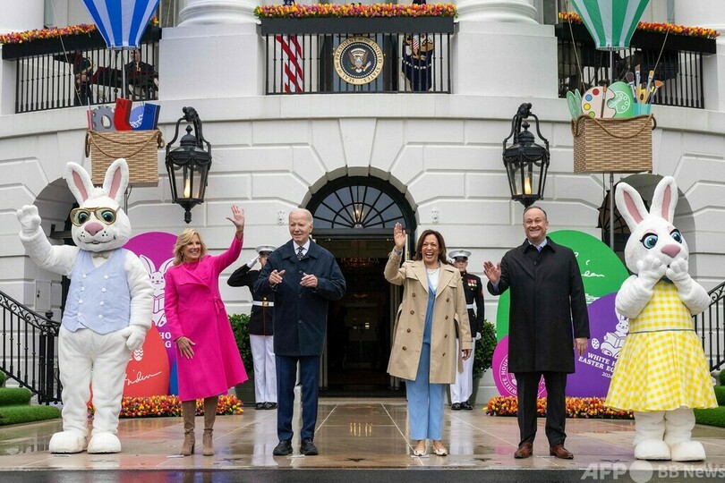 【4月2日 AFP】米首都ワシントンのホワイトハウス(White House)で1日、イースター(Easter、復活祭)恒例の「イースターエッグロール(Easter Egg Roll、卵転がし)」イベントが開催され、ジョー・バイデン(Joe Biden)大統領と妻ジル(Jill Biden)氏、カマラ・ハリス(Kamala Harris)副大統領夫妻が参加した。