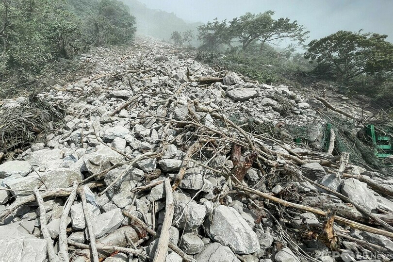 人口10万人の花蓮市は山に囲まれた沿岸都市で、市内に通じる主要道路には全長数キロのものを含めトンネルがいくつもある。複数の土砂崩れが発生しているため各所で通行ができなくなっており、当局はトンネル内に多くの人や車両が閉じ込められている恐れもあるとしている。(c)AFP/Amber WANG