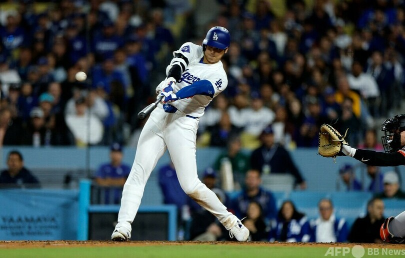 【4月4日 AFP】米大リーグ(MLB)は3日、各地で試合が行われ、ロサンゼルス・ドジャース(Los Angeles Dodgers)の大谷翔平(Shohei Ohtani)はサンフランシスコ・ジャイアンツ(San Francisco Giants)戦に2番・指名打者(DH)で先発出場し、今季第1号となるソロ本塁打を放つなど4打数2安打1本塁打1打点を記録した。ドジャースは5-4でジャイアンツを下し、シリーズ3戦全勝を飾った。