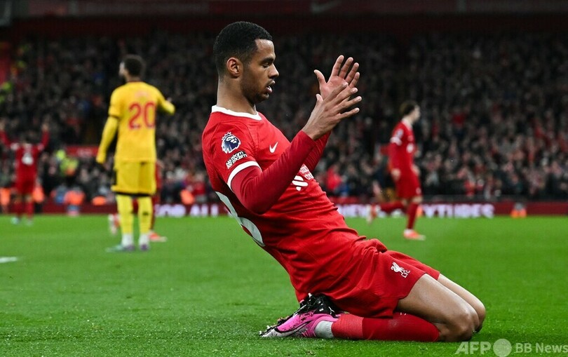 それでもリバプールは76分、アレクシス・マック・アリスター(Alexis Mac Allister)がペナルティーエリア端から強烈なフィニッシュをたたき込んで本拠地アンフィールド(Anfield)の緊張感を和らげると、終盤にはコーディ・ガクポ(Cody Gakpo)が勝ち点3を決定づける3点目を挙げた。