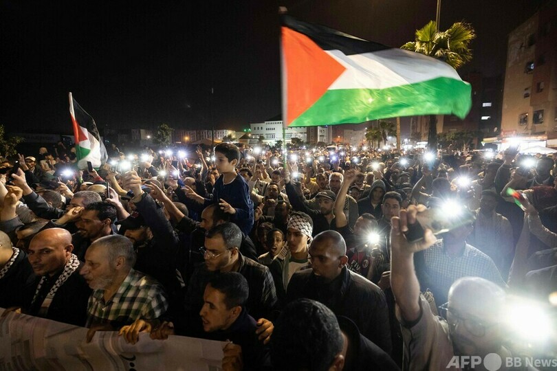 【4月6日 AFP】モロッコの商都カサブランカ(Casablanca)で5日夜、イスラエルとの国交正常化とパレスチナ自治区ガザ地区(Gaza Strip)での「虐殺」に抗議するデモが行われ、大勢が参加した。