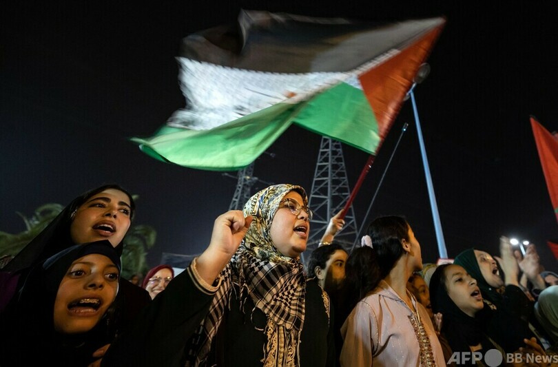 デモの主催者はAFPに対し、「イスラエルがパレスチナ人に対して行っている野蛮な虐殺、ガザでの破壊、そしてアラブ諸国の沈黙に『ノー』を突き付けるために来た」と語った。