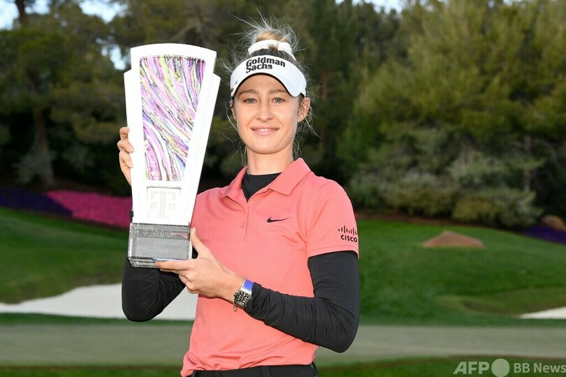 【4月8日 AFP】女子ゴルフ米国ツアー、Tモバイル・マッチプレー(2024 T-Mobile Match Play)は7日、米ネバダ州ラスベガス(Las Vegas)のシャドークリークGC(Shadow Creek GC、パー72)で決勝が行われ、世界ランキング1位のネリー・コルダ(Nelly Korda、米国)が出場4大会連続の優勝を果たした。