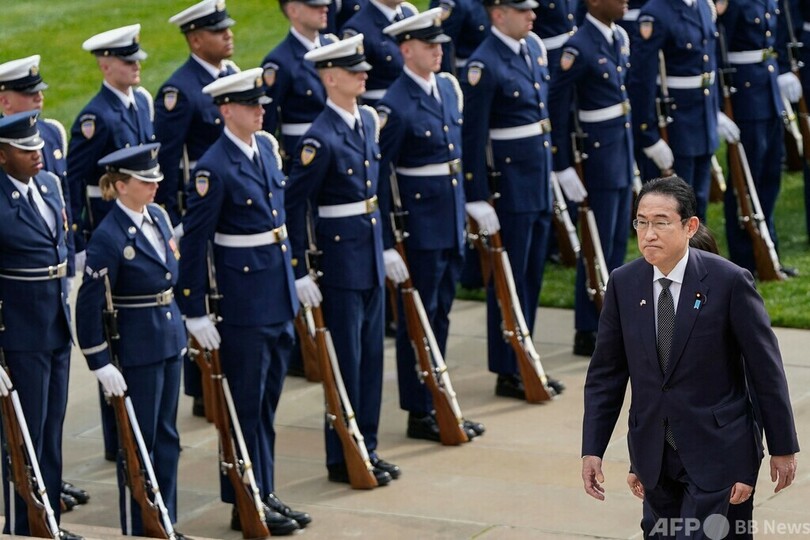 【4月10日 AFP】国賓待遇で訪米中の岸田文雄(Fumio Kishida)首相は9日、首都ワシントン郊外にあるバージニア州のアーリントン国立墓地(Arlington National Cemetery)を訪れ、無名戦士の墓に献花した。