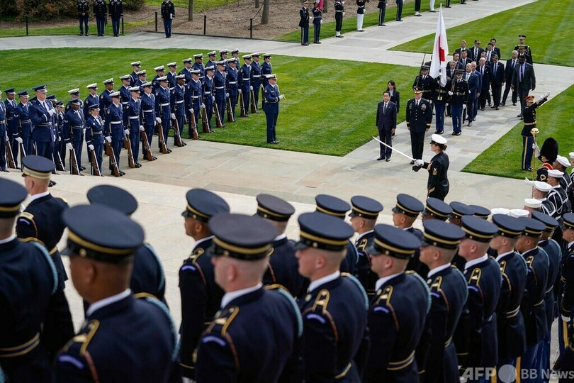 【4月10日 AFP】国賓待遇で訪米中の岸田文雄(Fumio Kishida)首相は9日、首都ワシントン郊外にあるバージニア州のアーリントン国立墓地(Arlington National Cemetery)を訪れ、無名戦士の墓に献花した。