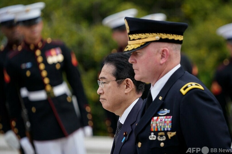 【4月10日 AFP】国賓待遇で訪米中の岸田文雄(Fumio Kishida)首相は9日、首都ワシントン郊外にあるバージニア州のアーリントン国立墓地(Arlington National Cemetery)を訪れ、無名戦士の墓に献花した。