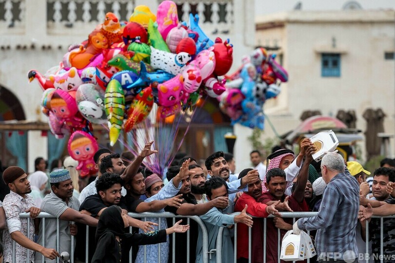 ニュース ライフ 今日の1枚 【今日の1枚】ねぎらいの食事配布に腕の列 カタール 2024年4月17日 12:15 発信地:ドーハ/カタール [ カタール 中東・北アフリカ ] このニュースをシェア ‹ › ❮ 2/4 ❯ カタール・ドーハにあるスークワキフ市場で、イスラム教の断食月「ラマダン」最終日に食事を配るボランティアスタッフ(2024年4月9日撮影)。(c)KARIM JAAFAR / AFP 画像作成中 ! 【4月17日 AFP】カタール・ドーハにあるスークワキフ(Souq Waqif)市場で、イスラム教の断食月「ラマダン(Ramadan)」最終日に食事を配るボランティアスタッフ。(c)AFP ライフ 一覧へ> メディア・報道関係・法人の方向け 写真・動画 購入のお問合せ>