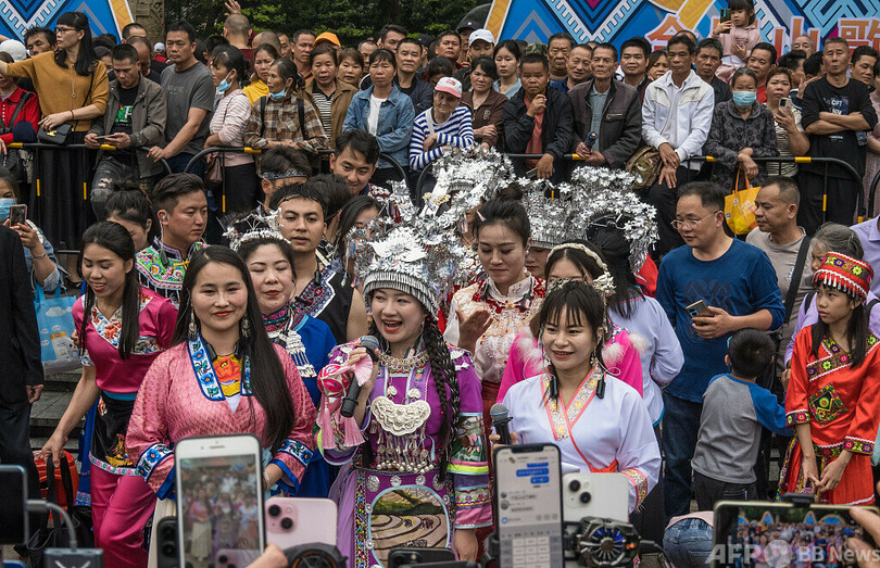 ワン族旧暦3月3日祭りは中華民族の伝統的な祝日で、2014年11月に国家級無形文化遺産拡充プロジェクトリストの第4組に登録されました。この祝日は歌の祭りとも呼ばれ、祖先を祭り、歌のやりとりを通じて配偶者を選び、食事会、劇の披露、繍球(花で作ったボール状の織物)を投げるなどの活動をする習慣があります。(c)CGTN Japanese/AFPBB News