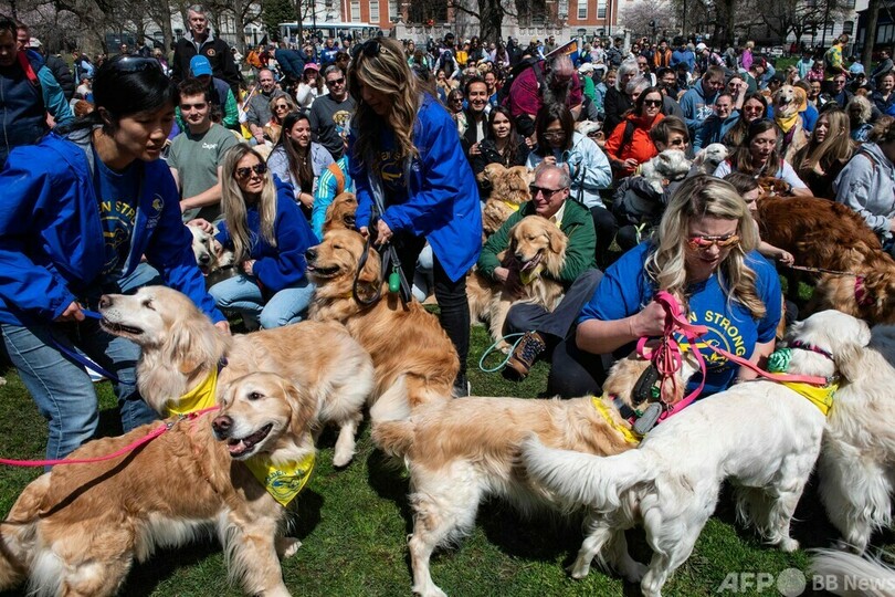 ゴールデンレトリバー大集合 ボストンマラソン「公式犬」たたえ