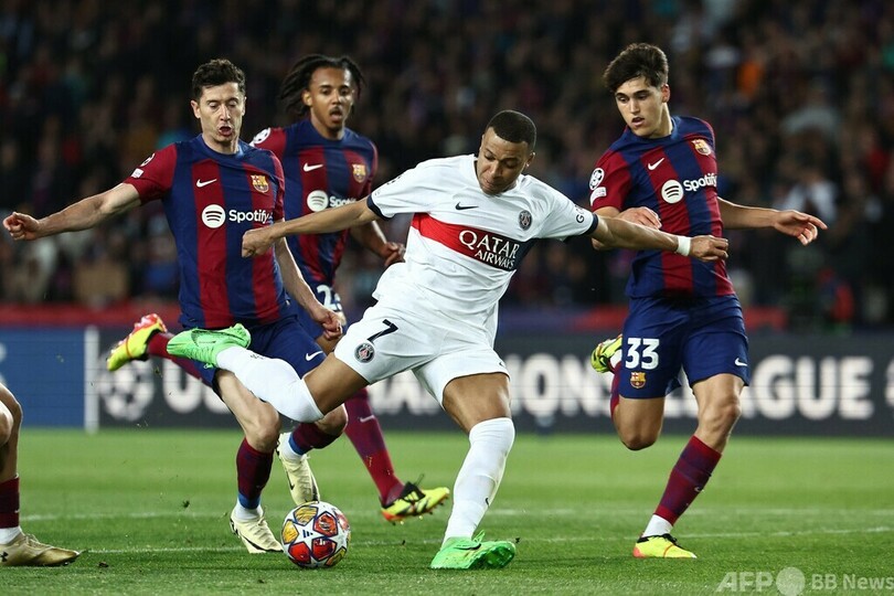 PSGが逆転4強、エムバペ2得点などで10人のバルサ下す 欧州CL