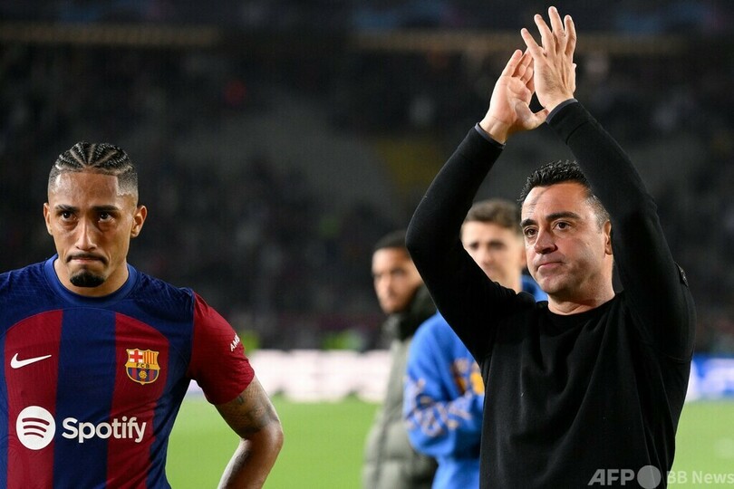 シャビ・エルナンデス(Xavi Hernandez)監督は「11人対10人では実質的に不可能だ」と話し、「あのレッドカードは不要だった。不公平だし、不必要だった」と判定を批判した。(c)AFP/Rik Sharma