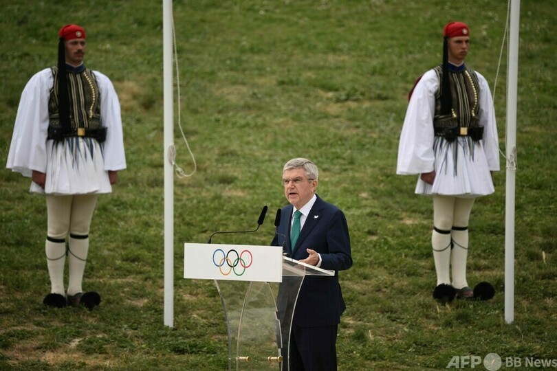 世界各地で危機が起こる中、国際オリンピック委員会(IOC)のトーマス・バッハ(Thomas Bach)会長は採火式で「われわれが本日ともす五輪聖火は、より良い未来に向けた希望の象徴だ」と話し、「古代五輪は戦争や紛争の中にあってさえ、ギリシャの都市国家をつなげた。今日、五輪は平和的な競争を通じて世界全体を一つにまとめる唯一のイベントだ」と述べた。(c)AFP/Yannick PASQUET with John HADOULIS