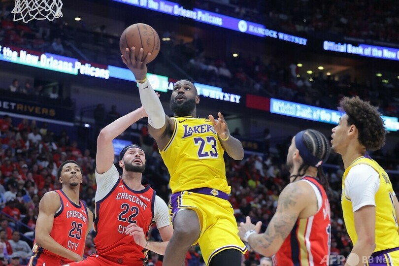 【4月17日 AFP】23-24NBAは16日、各地でプレーオフ進出を決めるプレーイン・トーナメントが行われ、ロサンゼルス・レイカーズ(Los Angeles Lakers)は110-106でニューオーリンズ・ペリカンズ(New Orleans Pelicans)を下し、プレーオフ進出を果たした。