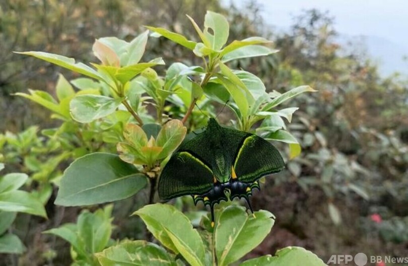 近年、九連山国家級自然保護区のオウゴンテングアゲハの生息環境はより適合してきたため、個体群が安定し、拡大傾向にあります。保護区と専門家は連携しオウゴンテングアゲハに対する長期的なモニタリング研究をおこない、重点分布区域に寄主植物の季節変化をモニタリングするビデオ装置9セットとチョウの生息と活動をモニタリングする装置3セットを設置し、オウゴンテングアゲハの生息規則をさらにモニタリングし、その個体群の繁殖過程で直面する実際の問題を解明するとしています。(c)CGTN Japanese/AFPBB News