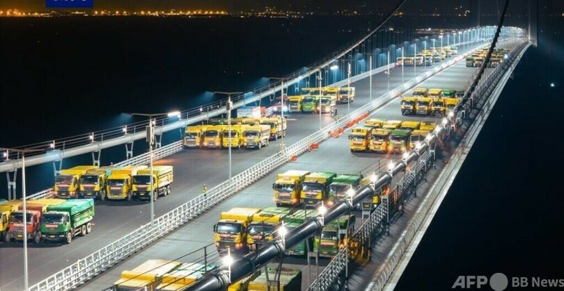 136台5000tの大型トラック、巨大工事・深中通路で荷重試験 中国