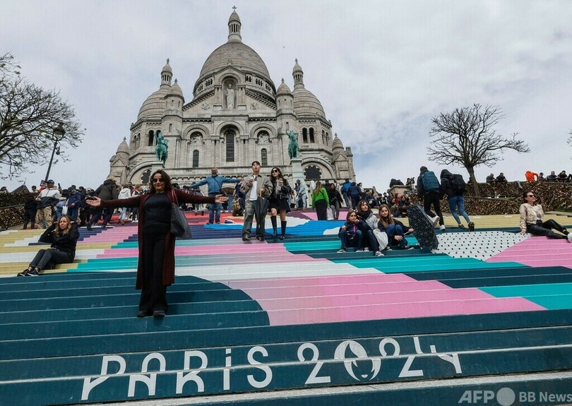 【今日の1枚】階段を鮮やかにペイント、サクレクール寺院も五輪歓迎ムード 仏