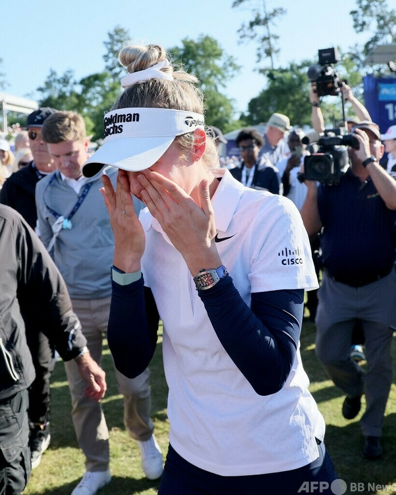東京五輪金メダルのコルダは、これで1月のLPGAドライブオン選手権(LPGA Drive On Championship 2024)から出場5大会連続の優勝で、メジャーでは21年の全米女子プロゴルフ選手権(KPMG Women's PGA Championship 2021)以来の勝利となった。ラウンド後には「やっと息をつける。バックナインは人生で一番長いバックナインに感じた」と振り返り、「少し苦しかったが、優勝できてうれしい」と喜んだ。(c)AFP