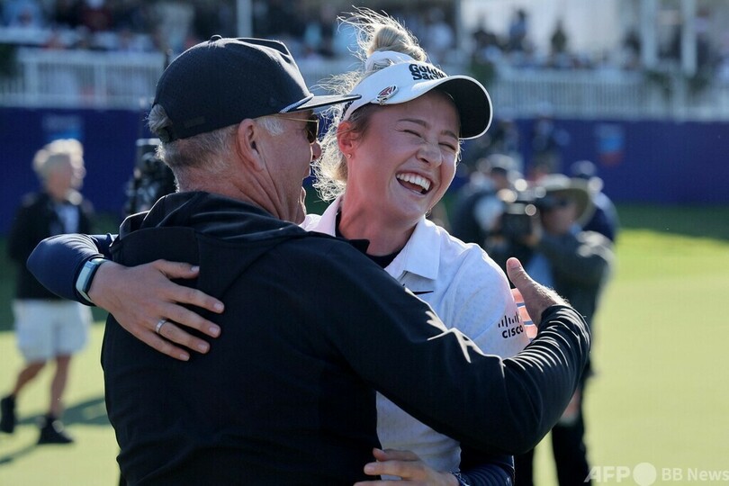 東京五輪金メダルのコルダは、これで1月のLPGAドライブオン選手権(LPGA Drive On Championship 2024)から出場5大会連続の優勝で、メジャーでは21年の全米女子プロゴルフ選手権(KPMG Women's PGA Championship 2021)以来の勝利となった。ラウンド後には「やっと息をつける。バックナインは人生で一番長いバックナインに感じた」と振り返り、「少し苦しかったが、優勝できてうれしい」と喜んだ。(c)AFP