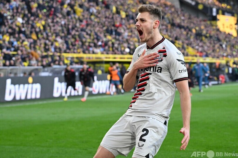 【4月22日 AFP】23-24ドイツ・ブンデスリーガ1部は21日、第30節の試合が行われ、新王者バイヤー・レバークーゼン(Bayer Leverkusen)は後半アディショナルタイム7分にヨシプ・スタニシッチ(Josip Stanisic)が同点ゴールを決めて1-1でボルシア・ドルトムント(Borussia Dortmund)と引き分け、今季公式戦の無敗記録を45に伸ばした。