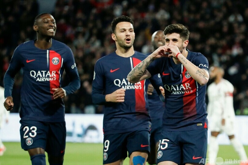 【4月22日 AFP】23-24フランス・リーグ1は21日、第30節の試合が行われ、パリ・サンジェルマン(Paris Saint-GermainPSG)は4-1でオリンピック・リヨン(Olympique Lyon)に大勝し、リーグ優勝まであと一歩に迫った。