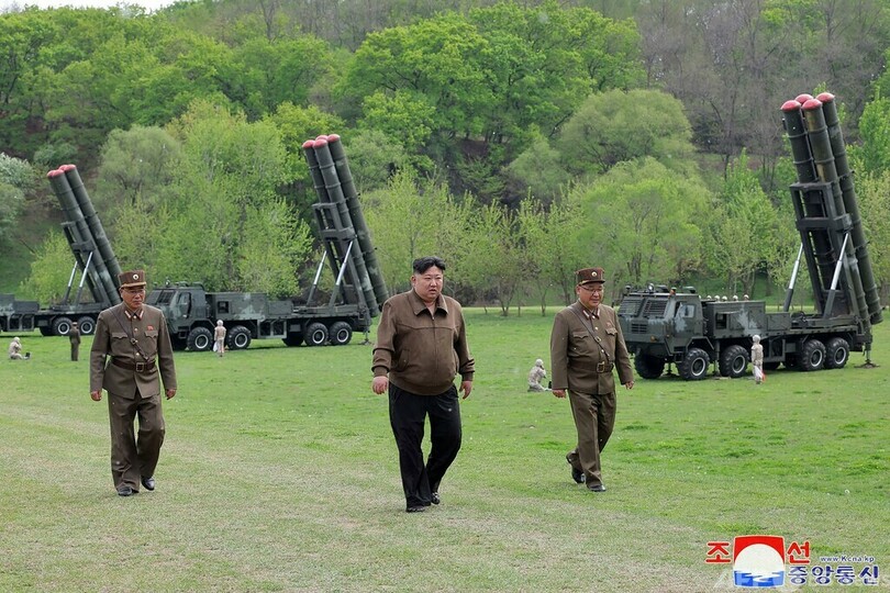 KCNAは、金氏が「核攻撃への反撃を想定した複合戦術訓練を指導した。訓練では部隊が超大型多連装ロケット砲を発射した」と報道。