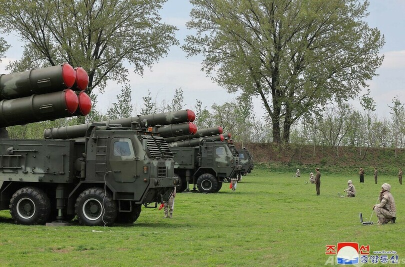 KCNAは、金氏が「核攻撃への反撃を想定した複合戦術訓練を指導した。訓練では部隊が超大型多連装ロケット砲を発射した」と報道。