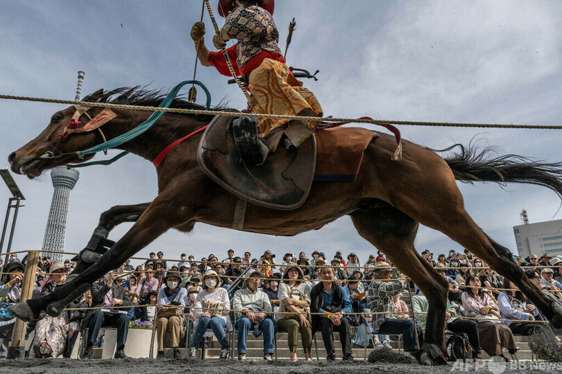 ニュース ライフ 今日の1枚 【今日の1枚】武士の真骨頂、人馬一体の妙技 2024年4月28日 12:15 発信地:東京 [ 日本 アジア・オセアニア ] このニュースをシェア ‹ › ❮ 1/4 ❯ 東京の隅田公園で流鏑馬(やぶさめ)のデモンストレーションが行われ、疾走する馬の上から的を射る武士装束の射手(2024年4月20日撮影)。(c)Yuichi YAMAZAKI / AFP 画像作成中 ! 【4月28日 AFP】東京の隅田公園(Sumida Park)で流鏑馬(やぶさめ)のデモンストレーションが行われ、疾走する馬の上から的を射る武士装束の射手。(c)AFP ライフ 一覧へ> メディア・報道関係・法人の方向け 写真・動画 購入のお問合せ>
