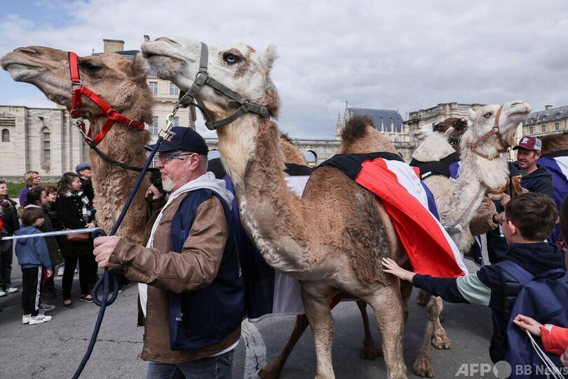 【今日の1枚】パリ郊外でラクダ科のパレード、都市部では禁止!? 仏