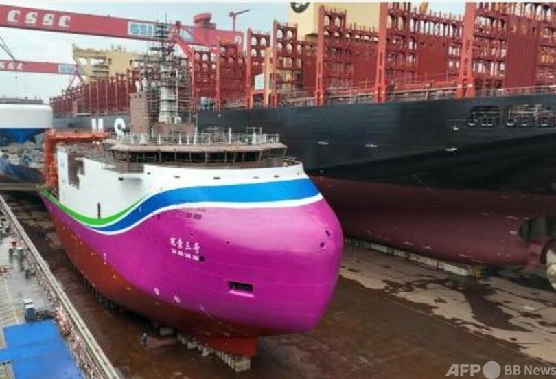 同船のドック出しは、中国が氷海域での深海科学調査装備と船舶設計を自主的に制御可能になった点で重要な進展を遂げたことを意味します。これはまた、中国の有人深海潜水能力があらゆる水深から全海域へ拡大し、深海考古作業の能力向上にもつながるとみられています。(c)CGTN Japanese/AFPBB News