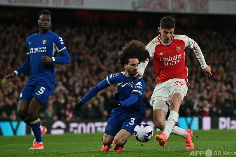 【4月24日 AFP】23-24イングランド・プレミアリーグは23日、第29節の延期分が行われ、暫定首位のアーセナル(Arsenal)は5-0でチェルシー(Chelsea)に大勝し、優勝を争うリバプール(Liverpool FC)とマンチェスター・シティ(Manchester City)にプレッシャーをかけた。