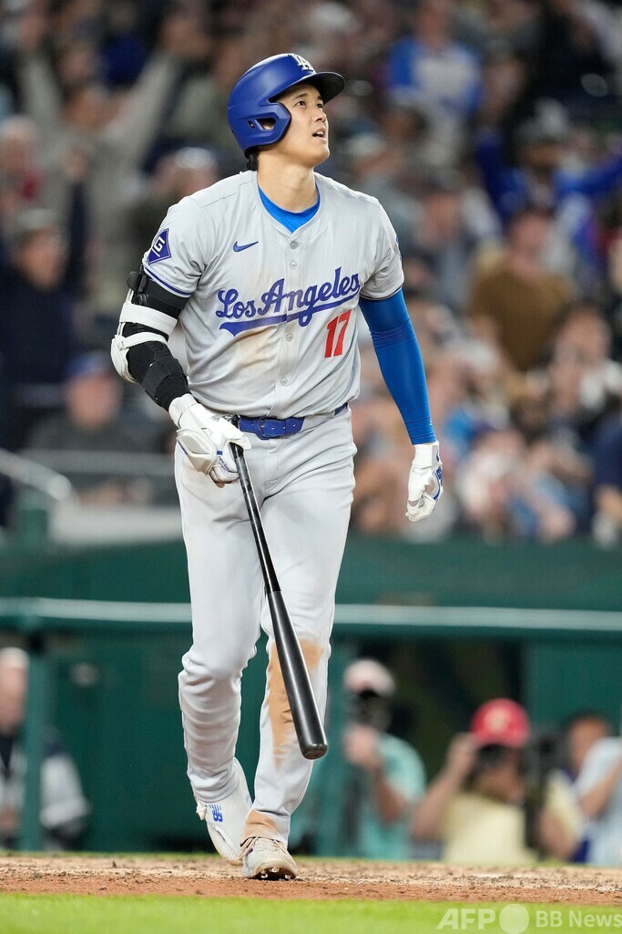 【4月24日 AFPBB News】米大リーグ(MLB)は23日、各地で試合が行われ、ロサンゼルス・ドジャース(Los Angeles Dodgers)の大谷翔平(Shohei Ohtani)はワシントン・ナショナルズ(Washington Nationals)戦に2番・指名打者(DH)で先発出場し、9回に2試合連発となる第6号ソロを放つなど4打数1安打1打点、1四球だった。チームは4-1で勝利した。(c)AFPBB News