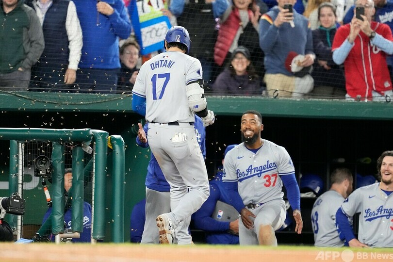 【4月24日 AFPBB News】米大リーグ(MLB)は23日、各地で試合が行われ、ロサンゼルス・ドジャース(Los Angeles Dodgers)の大谷翔平(Shohei Ohtani)はワシントン・ナショナルズ(Washington Nationals)戦に2番・指名打者(DH)で先発出場し、9回に2試合連発となる第6号ソロを放つなど4打数1安打1打点、1四球だった。チームは4-1で勝利した。(c)AFPBB News